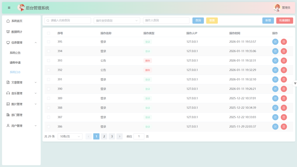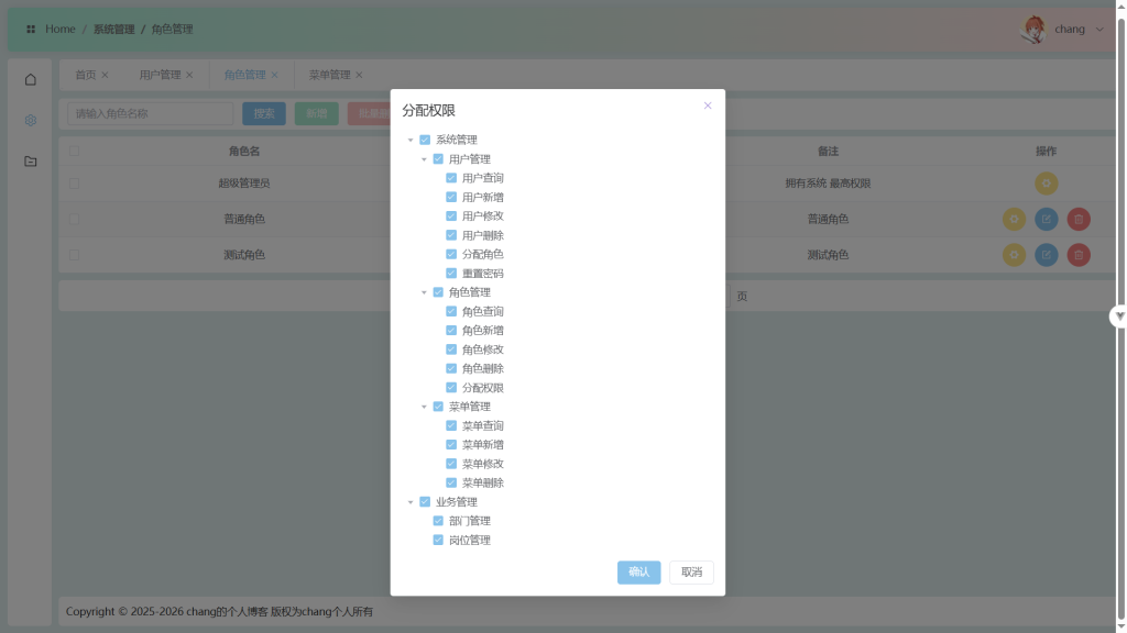 账号登录:会使用pinia依次保存token,动态路由(由权限管理12级目录分配,为菜单管理的目录,菜单),动态权限(由权限管理3级目录分配,为菜单管理的按钮的权限标识),和个人信息;