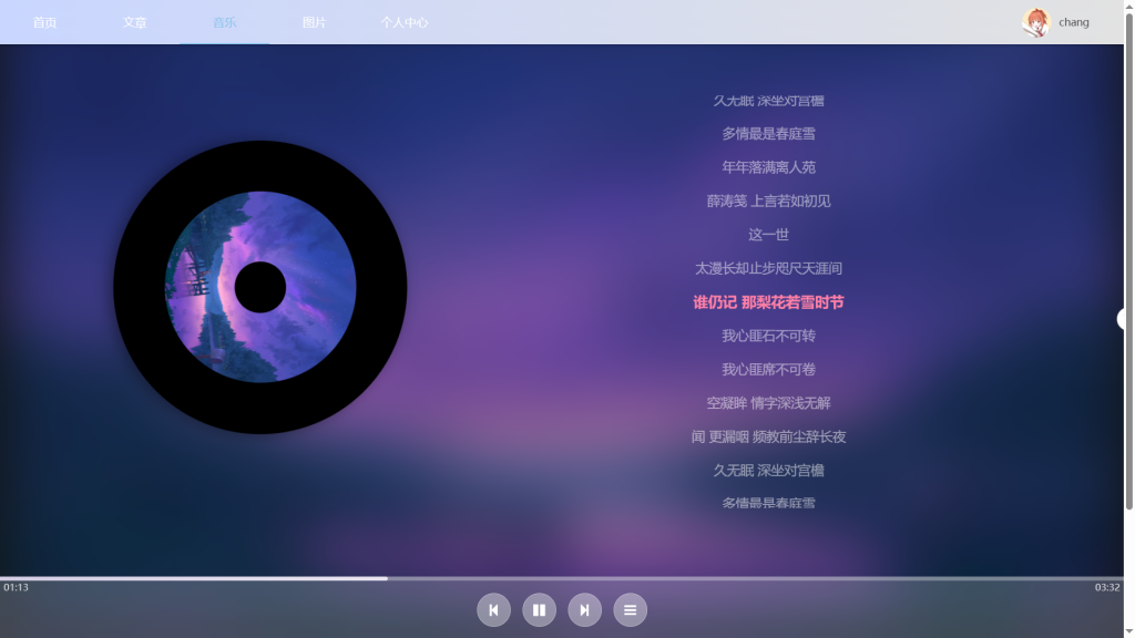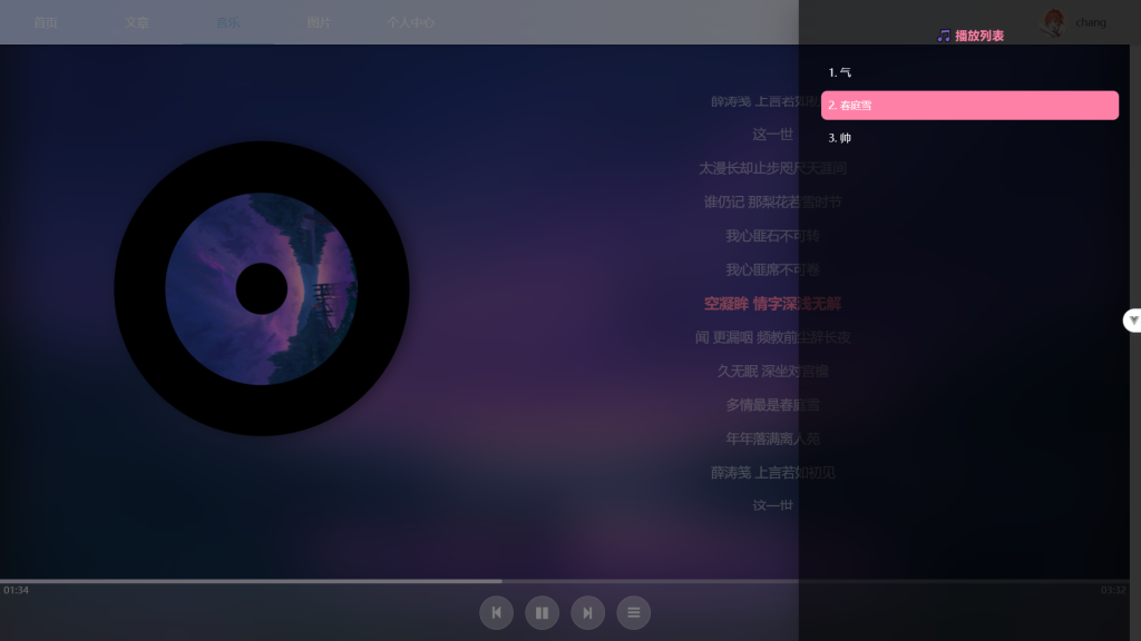 说明:基础播放按键+旋转唱片+歌词跳动