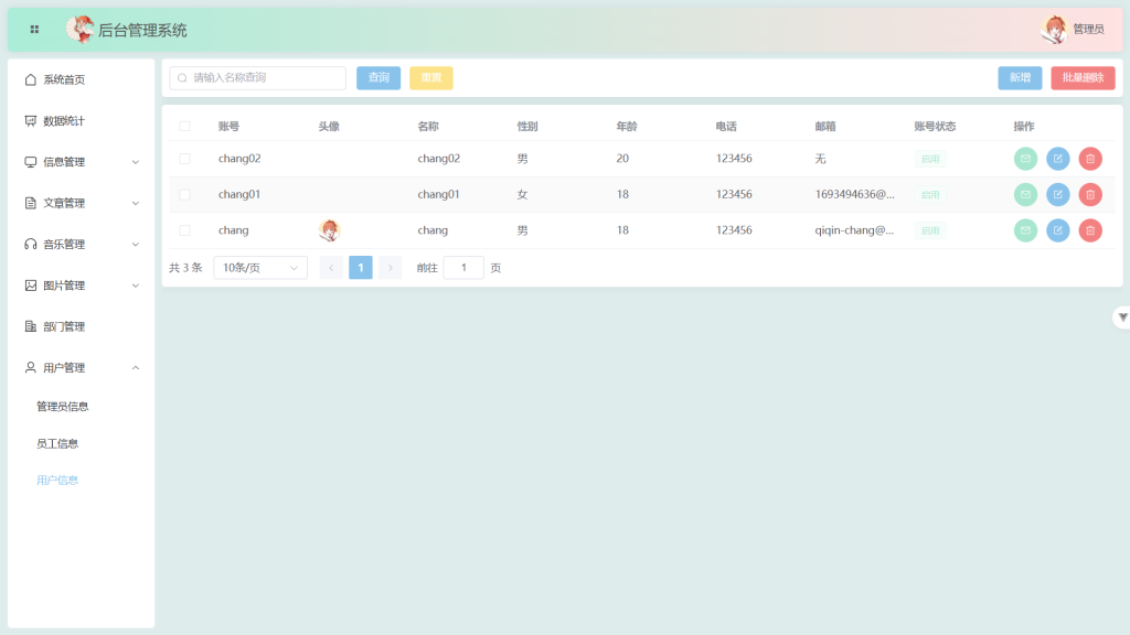 用户管理:
