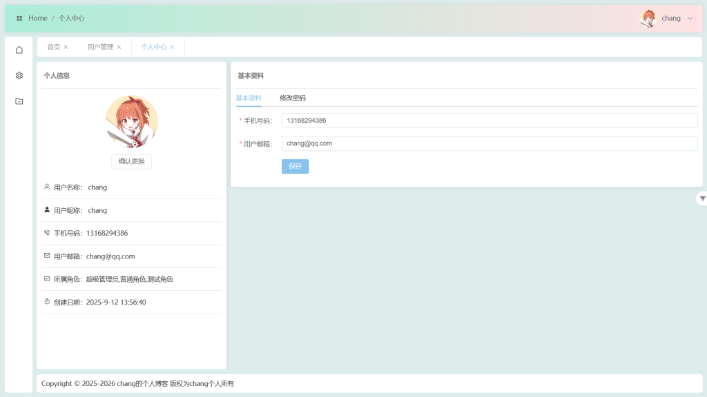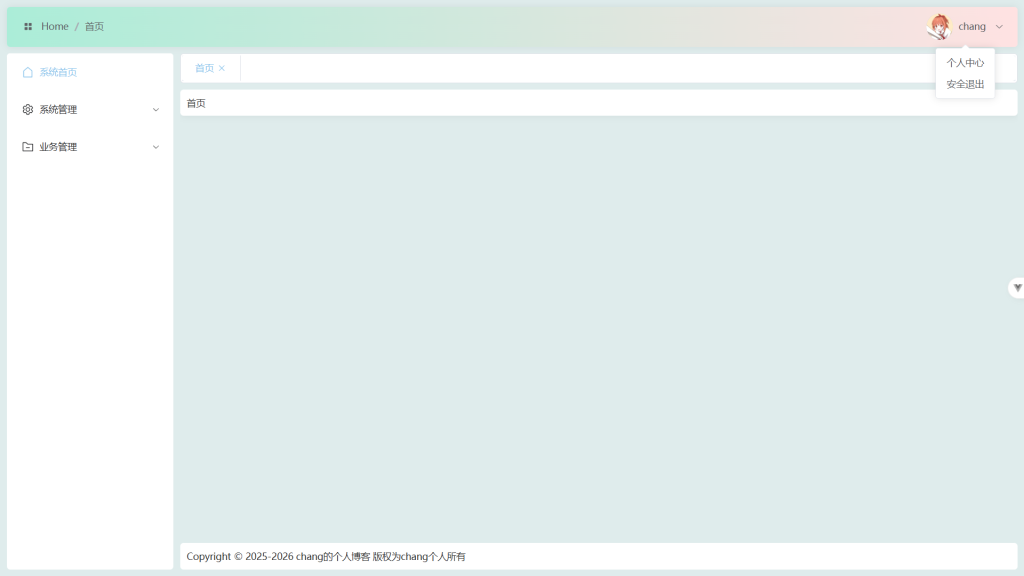 说明:动态路由+动态菜单+动态标签页(固定首页)+面包屑导航+导航收缩按键+头像下拉栏+安全退出