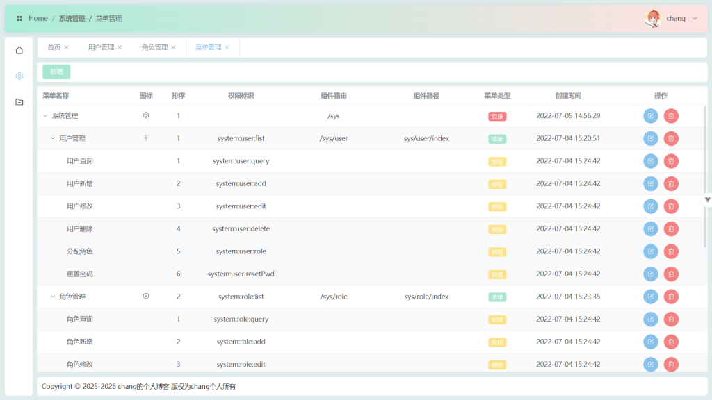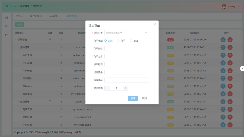 菜单管理: