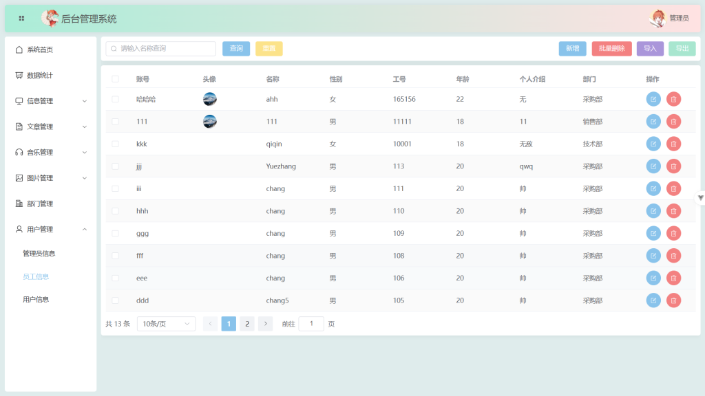 说明:导入 点击导入选择文件就可以导入信息 导出 点击导出就能生成Excel文件